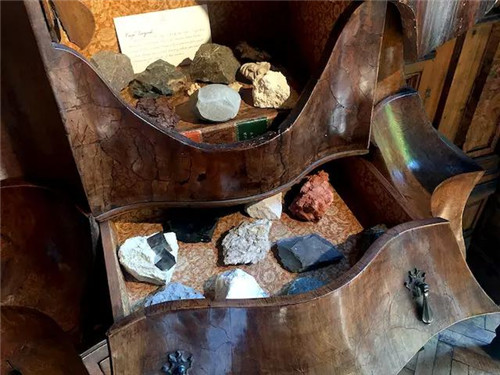 倫敦藝術(shù)家 Faye Toogood 在旅行途中收集來(lái)的各式各樣的石頭,被放在一個(gè)古老的、異形的裝飾柜內(nèi)。