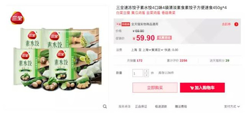 中國消費者突然對素餃子產生了興趣。市場調研公司尼爾森的數據顯示,去年純蔬菜速凍餃子的銷量增長了30%,而同期速凍餃子品類的銷量增長只有 7%。