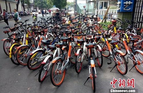 資料圖:江西南昌一共享單車停放點(diǎn)。 中新社記者 劉占昆 攝