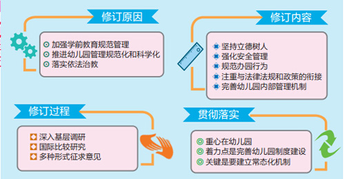 隨著經(jīng)濟社會的發(fā)展,教育改革的不斷深入,學(xué)前教育事業(yè)發(fā)展迅速,幼兒園教育的內(nèi)外環(huán)境和條件也發(fā)生了巨大變化。因此,《規(guī)程》需要在新的形勢下進行調(diào)整,不斷推進幼兒園內(nèi)部管理和辦園行為的規(guī)范化,促進幼兒園保教質(zhì)量不斷提升?!?nbsp;