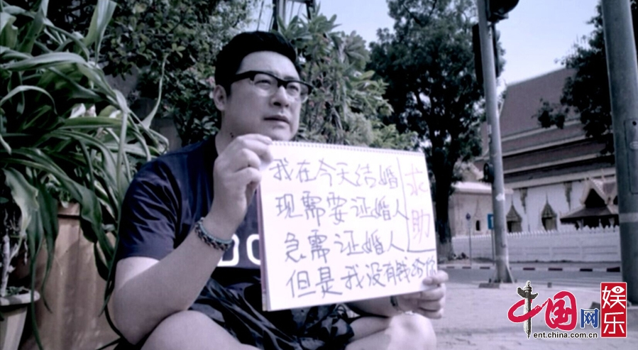 該片段中,王岳倫變身“落魄浪人”,獨(dú)自坐在老撾的馬路邊,手舉中文告示牌急求證婚人,然而車水馬龍的街頭并沒(méi)有人為他停下腳步,最終王岳倫被折磨得精神奔潰,只能對(duì)著天空大喊:“證婚人!你在哪!”