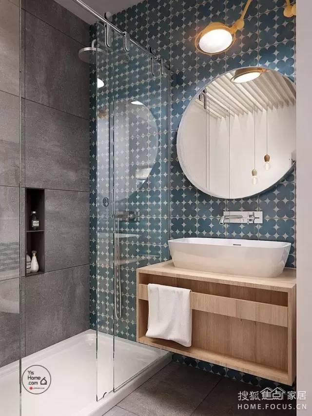 ▲ 補(bǔ)救妙招:后期多設(shè)光源,比如浴柜的鏡前燈。有的鏡前燈是自帶電源的,十分方便,或者直接安一個(gè)臺(tái)燈固定在墻面上,款式、顏色最好還是和衛(wèi)生間的風(fēng)格保持一致。也可將浴霸燈泡換成節(jié)能燈管。