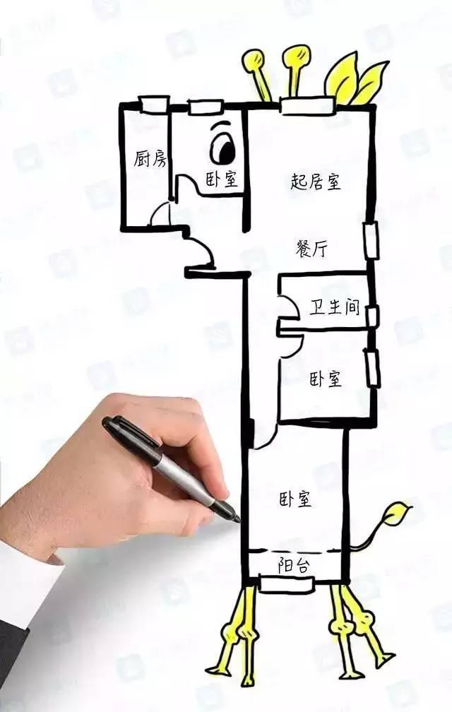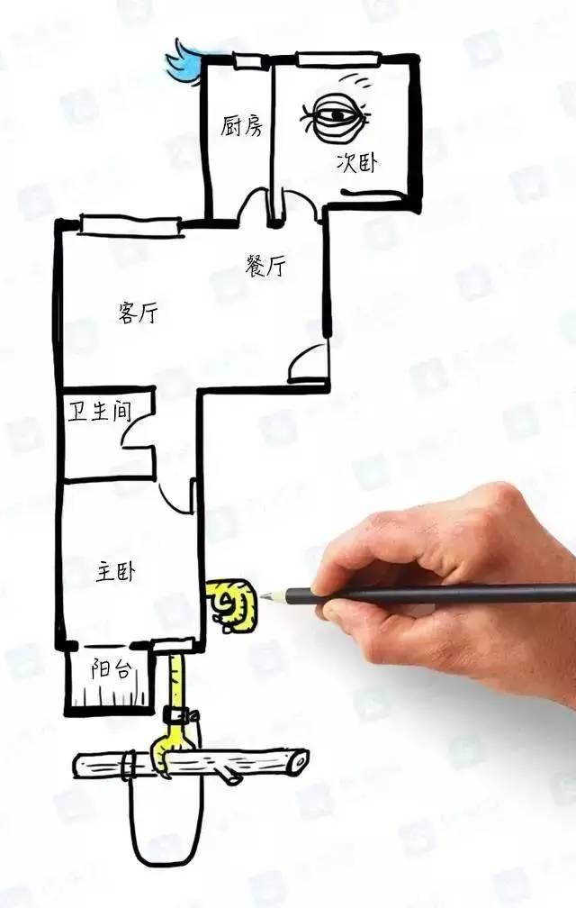 4、從進(jìn)門開始,要到臥室有三個拐角,實際空間利用率降低,主臥離衛(wèi)生間實在太遠(yuǎn),冬天想上個廁所真是折磨人了。