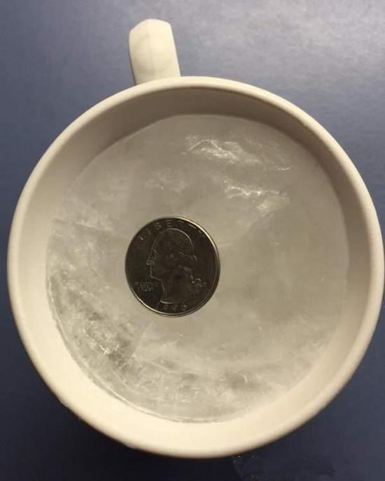 這時候只要在冷凍庫中放入一個「結(jié)冰的水杯」并在「水杯上放一枚硬幣」即可!