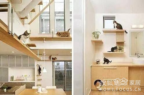 5.可以設(shè)置了一個步步高貓爬架。可以給好幾只貓?zhí)峁┩瑫r睡覺還不互相打擾的地方。然后和這個貓爬架相連的是一整面墻的貓?zhí)_。