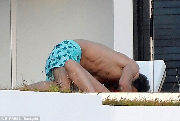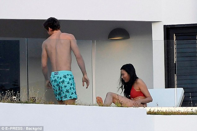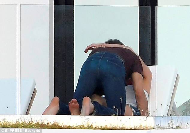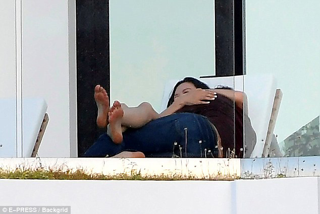 鄧文迪和小男友在露臺(tái)躺椅上抱在一起。