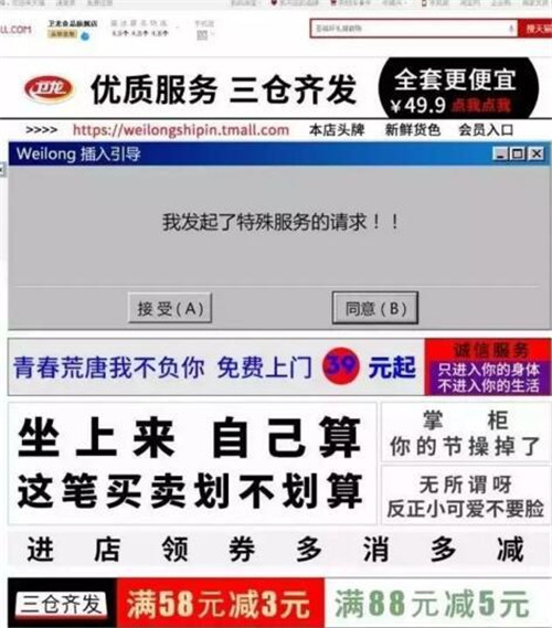 此外,“污”文化也倍它玩得爐火純青。其天貓旗艦店的主頁(yè)在某一天以AV網(wǎng)站的畫(huà)風(fēng)面世,簡(jiǎn)直污得不要不要的,引得一眾網(wǎng)友以為自己點(diǎn)錯(cuò)了鏈接。