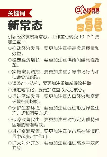 會(huì)議認(rèn)為,認(rèn)識(shí)新常態(tài)、適應(yīng)新常態(tài)、引領(lǐng)新常態(tài),是當(dāng)前和今后一個(gè)時(shí)期我國(guó)經(jīng)濟(jì)發(fā)展的大邏輯,這是綜合分析世界經(jīng)濟(jì)長(zhǎng)周期和我國(guó)發(fā)展階段性特征及其相互作用作出的重大判斷。要適應(yīng)新常態(tài),需要在理論上作出創(chuàng)新性概括,在政策上作出前瞻性安排。