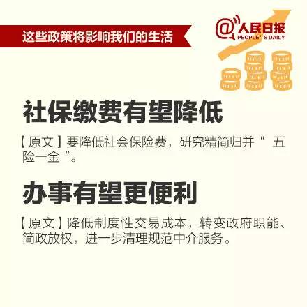 這次會(huì)議還用十個(gè)“更加注重”指明了新常態(tài)下應(yīng)該“怎么干”。更為關(guān)鍵的是,這個(gè)看似“高大上”的經(jīng)濟(jì)工作會(huì)議,其實(shí)離你我并不遙遠(yuǎn):社會(huì)保險(xiǎn)費(fèi)有望降低、非戶籍人口也能住公租房、鼓勵(lì)房企適當(dāng)降房?jī)r(jià)……中央敲定下的這些事,新的一年毫無(wú)疑問(wèn)將給你我生活帶來(lái)深刻影響。
