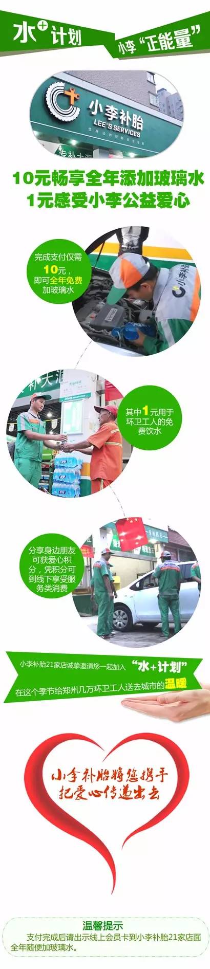 水+計劃 河南經(jīng)濟(jì)廣播 小李補(bǔ)胎“愛心公益在行動”10元暢享全年添加玻璃水