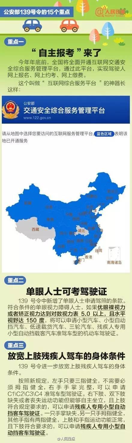 4月1日起,公安部《機動車駕駛證申領(lǐng)和使用規(guī)定》將正式實施。今后,駕駛?cè)丝荚嚳梢跃W(wǎng)上自主預(yù)約,駕駛證在全國可以異地年審,每年提交駕駛證身體條件證明的年齡由60周歲改為70周歲……