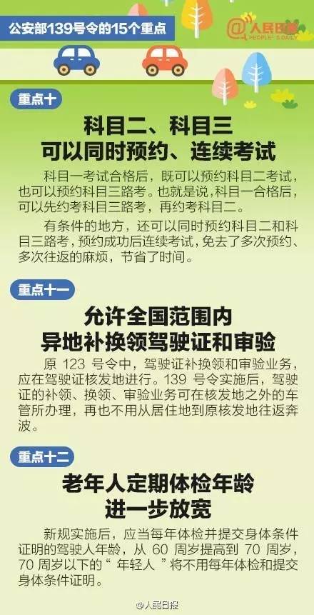 解讀:以前,超過60周歲,需要每年到公安交通管理部門提交身體條件證明。新規(guī)實施后,每年提交身體條件證明的年齡是70周歲。