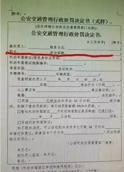 《通知》要求,從7月1日起,各地在按照一般程序對交通違法行為作出行政處罰時,應當調查被處罰人的政治面貌和職業(yè)信息,并在制作《公安交通管理行政處罰決定書》時填寫。