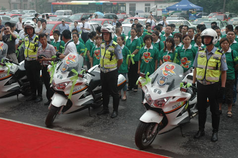 活動現場匯集了許多愛心車友,鄭州市交警支隊也派出三個交警“飛鷹”小組參加啟動儀式