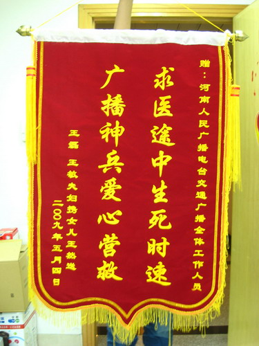王然父母贈(zèng)送給河南交通廣播的錦旗