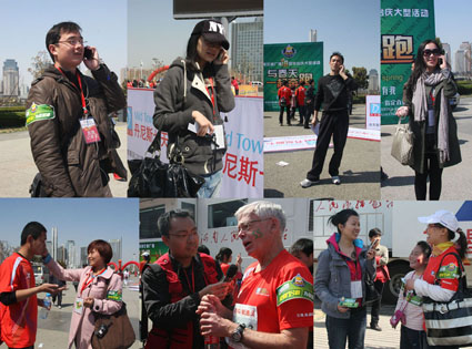 在歷時四個小時的直播過程里,現(xiàn)場大型直播車就像漂浮在旗幟和人群大海洋中的帆船,顛簸在聲浪中的現(xiàn)場主持人與主直播室的主持人默契配合,共完成與現(xiàn)場記者連線20多個,分別邀請了鄭州市副市長劉東、1041跑友團(tuán)、冠軍選手、情侶馬拉松參賽者、志愿者等嘉賓走進(jìn)現(xiàn)場直播車,就全民健身的話題進(jìn)行溝通、交流、分享。而守候在多個點位的15名現(xiàn)場記者用手機(jī)連線的方式,為聽眾傳遞出賽場激昂的心跳聲、沸騰的歡呼聲,并通過電波飛揚在春天里,彌漫在春風(fēng)中!