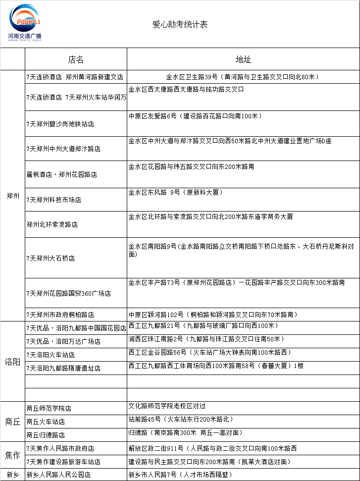 考生憑準考證免費搭乘地鐵、公交之外,河南交通廣播聯(lián)合鄭州、洛陽、商丘、焦作、新鄉(xiāng),5個地市,推出百套免費高考房,家里有考生的家長,通過河南交通廣播官方微信發(fā)送“高考房”獲取免費高考房酒店地址信息,請工作日(周一至周五早上09:00-18:00)電話9601188預(yù)約,因免費高考房有限,需要從速;另外高考期間,我們還在考點門口為考生和家長準備消暑涼茶,同時河南交通廣播“交廣號”直升機,將全程參與疏導(dǎo)交通壓力,提供應(yīng)急服務(wù),點滴善舉,幫助河南考生“鯉躍龍門”。