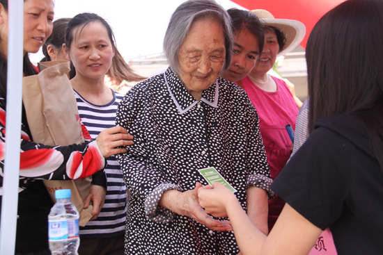 老奶奶領(lǐng)到健康體檢卡很開心