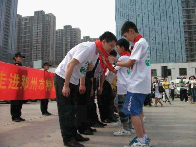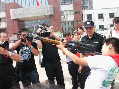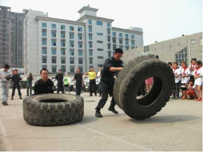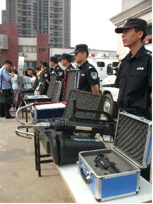 5月31日上午,鄭州市公安局特警支隊(duì)大院里熱鬧非凡,35名小學(xué)生成為這里的特殊客人。在特警支隊(duì)副隊(duì)長(zhǎng)弋遂勤的帶領(lǐng)下,大家興致勃勃地逐一體驗(yàn)了各類防暴器械,觀看武警戰(zhàn)士的絕技表演。特警四大隊(duì)演示的警棍盾牌術(shù)剛毅雄壯,特警新警大隊(duì)的新式擒敵拳颯爽英姿,當(dāng)備戰(zhàn)“2012全國(guó)公安特警比武”的特警猛士一口氣搬起二百斤的巨型輪胎時(shí),大家不由得發(fā)出一陣驚呼!