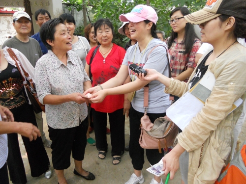“周迪,呀,來(lái)了這么多人?走、走、到家了,回咱家去?!苯裉欤?012年6月7號(hào))上午10點(diǎn)多,河南人民廣播電臺(tái)信息廣播的部分職工和《周迪有戲》欄目組的戲迷剛到村邊,就遇到了早早等候在村口的商大娘,她熱情的話語(yǔ)透著一個(gè)莊戶人的熱情與樸實(shí)。