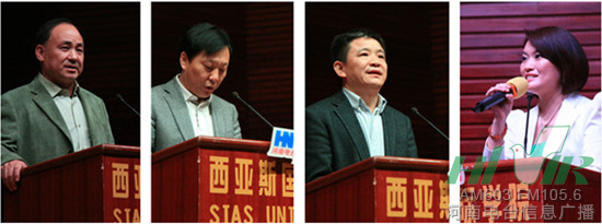 左起:鄭州大學(xué)西亞斯國際學(xué)院黨委書記費(fèi)鶴祥 河南人民廣播電臺(tái)副臺(tái)長李海軍