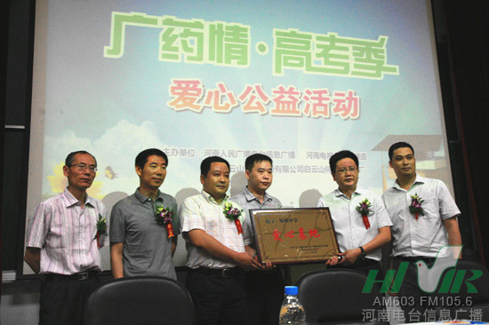 6月3號,河南電臺信息廣播聯(lián)合河南電視臺第九頻道、廣州白云山何濟公制藥廠,在鄭州大學共同舉辦了以“愛心助高考 迎接新人生”為主題的“廣藥情 高考季”系列愛心公益活動。