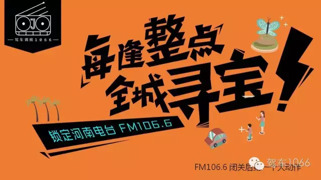參與方式:現在立刻馬上關注“駕車1066”官微-每天收聽FM106.6-獲取每個整點通關密語-回復通關密語到官微后臺-即可獲得藏寶圖-到指定地點領獎呦!