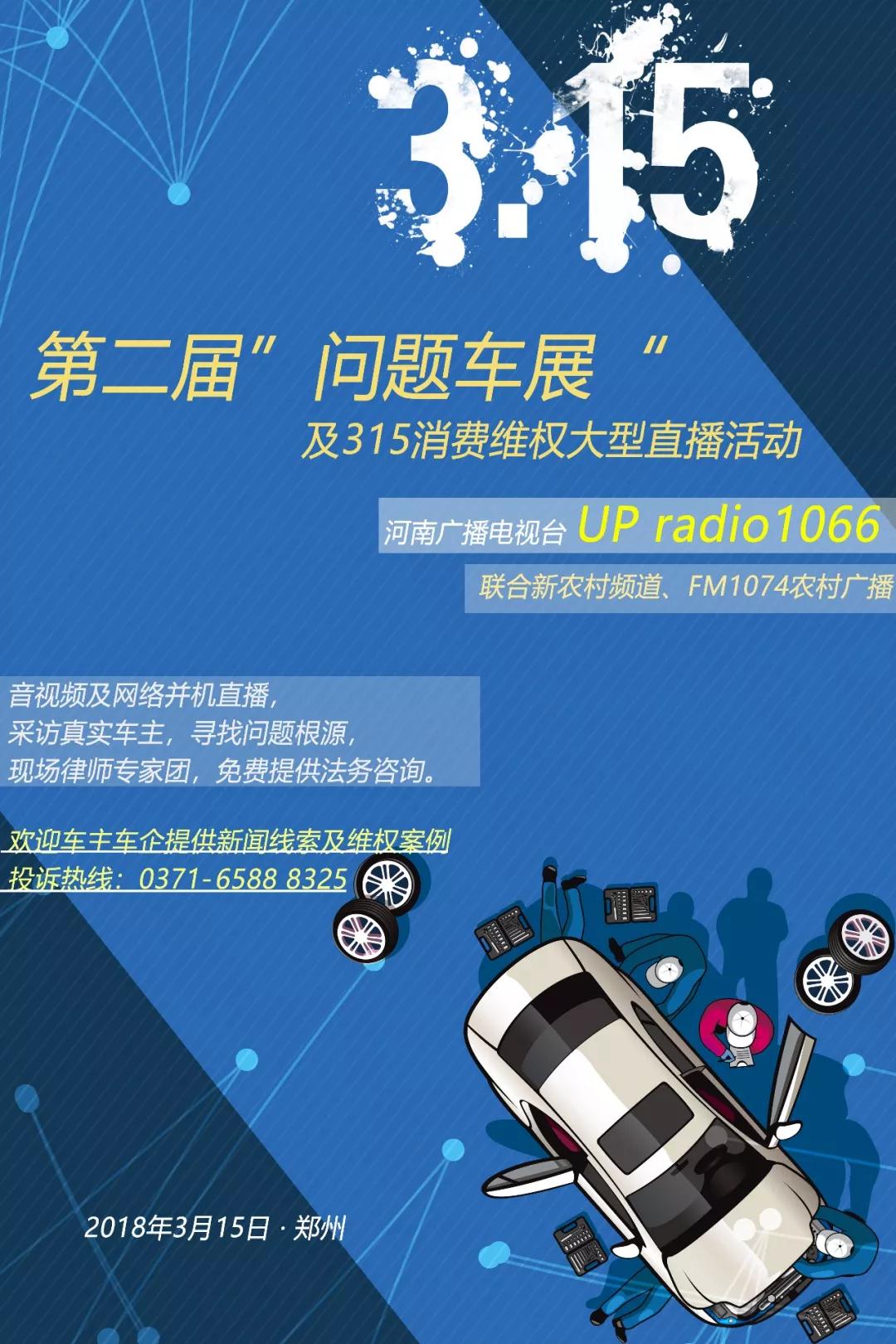 2、關(guān)注UP Radio 1066微信公眾號(hào)發(fā)送“315問(wèn)題車(chē)展+姓名+聯(lián)系方式+車(chē)型+故障簡(jiǎn)述”至微信后臺(tái)報(bào)名。
