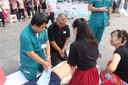 醫(yī)生們一邊操作,一邊講解,市民們有不明白的,還可以現(xiàn)場提問。幾乎每一位認真學(xué)習(xí)的市民都想一試身手,醫(yī)生則在一旁一對一指導(dǎo)。