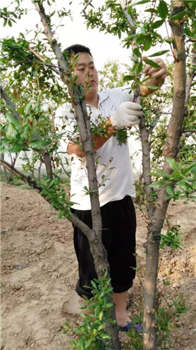 農(nóng)業(yè)生產(chǎn)過(guò)程的管理,對(duì)石榴的品控尤為關(guān)鍵。既然是農(nóng)民就要會(huì)種地,種石榴。要學(xué)習(xí)扦插樹(shù)苗、修剪果樹(shù)、施肥、翻地。父輩是靠經(jīng)驗(yàn),小綱他們照著做,慢慢發(fā)現(xiàn)經(jīng)驗(yàn)有時(shí)也會(huì)錯(cuò),每個(gè)人說(shuō)法不一,這就要靠自己一點(diǎn)點(diǎn)去實(shí)踐,他們也會(huì)把自己摸索的技術(shù)通過(guò)萬(wàn)氏石榴合作社的微信公眾號(hào)分享給更多人。
