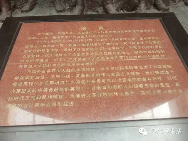 紀(jì)念抗日戰(zhàn)爭暨世界反法西斯戰(zhàn)爭勝利70周年追隨先輩足跡,唱響時代凱歌——紀(jì)念抗日戰(zhàn)爭暨世界反法西斯戰(zhàn)爭勝利70周年晉冀魯豫記者大型聯(lián)合采訪活動《回聲》拉開大幕前方報道晉冀魯豫四省聯(lián)和采訪團(tuán)的第二站來到了山西陽泉縣獅腦山百團(tuán)大戰(zhàn)紀(jì)念館,百團(tuán)大戰(zhàn)是中國抗日戰(zhàn)爭時期,中國共產(chǎn)黨領(lǐng)導(dǎo)下的八路軍、新四軍與日軍在中國華北地區(qū)晉察冀邊區(qū)發(fā)生的一次規(guī)模最大、持續(xù)時間最長的戰(zhàn)役。