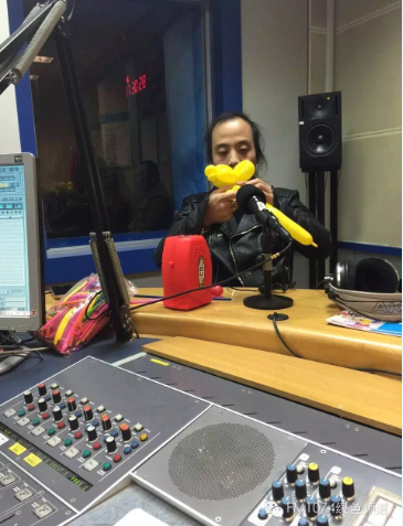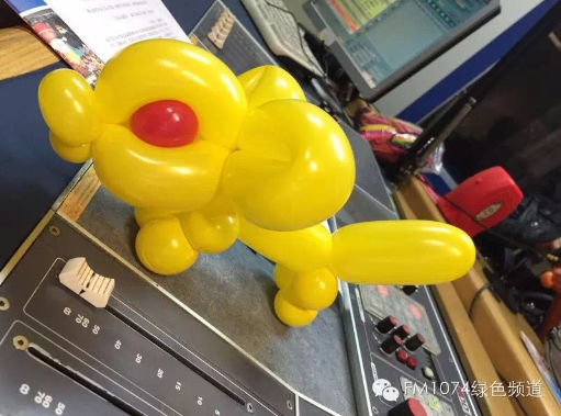 河南電臺(tái)1074綠色頻道直播間,胡耀輝現(xiàn)場(chǎng)做起了氣球玩偶。