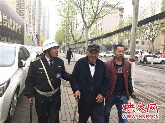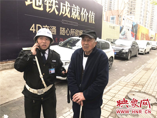 4月5日上午,在鄭州市工人路與汝河路交叉口附近,一手拄拐杖一手拎袋水果的八旬老漢向巡防隊員求助,說自己一大早到航海路帝湖廣場趕早市買水果,準備到汝河路上的小外甥女家看看,結(jié)果一出早市就迷路了。不巧的是,老人所用的老年寶手機也出毛病聽不見聲音。他一直走了3個多小時也沒找到小外甥女家。