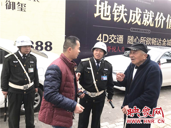 據(jù)了解,侯老先生今年87歲,老家是山東聊城人,今年春節(jié)前來鄭州的女兒家探親至今。5日一大早,老人從航海路秦嶺路口附近茜城花園的女兒家去帝湖廣場趕早市,買點水果打算到汝河路桐柏路口的外甥女家看看,沒想到一出早市門就走迷路了。正徘徊路邊著急犯難時,遇到了巡防隊員。