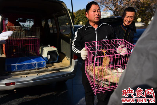 13日下午14時許,鄭州市人民公園西門口,鄭州市林業(yè)局野生動物救護站的工作人員將幾只鐵籠子分別裝上面包車?;\子里裝著的是救護站近段時間救護的已經(jīng)具備放生條件的鳥類和獸類,這些動物將在自然條件比較優(yōu)越的新鄭市具茨山放生。