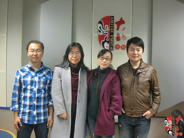 左起:河南電臺戲曲廣播《梨園留聲機》主持人王博,《梨園老照片》主持人曉雪,戲曲廣播副總監(jiān)張彤,品牌部主任月陽