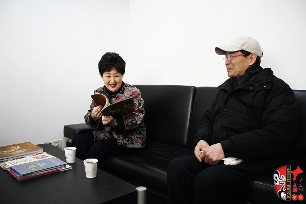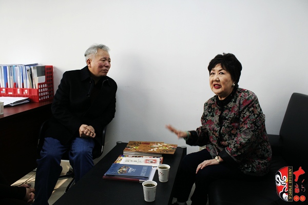 河南人民廣播電臺副臺長翟國選(左)親自接見京劇荀派傳人孫毓敏(右)