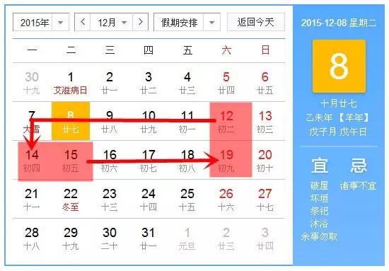 經(jīng)省政府同意,除保障會議活動、城市運行等必要的工作崗位外,中央駐鄭機(jī)關(guān)、事業(yè)單位和社會團(tuán)體,省直機(jī)關(guān)、事業(yè)單位和社會團(tuán)體,鄭州市機(jī)關(guān)、事業(yè)單位、中小學(xué)校、幼兒園和社會團(tuán)體,將12月12日(星期六)公休日調(diào)到12月14日(星期一)休息,12月19日(星期六)公休日調(diào)到12月15日(星期二)休息,12月12日(星期六)、12月19日(星期六)上班。鄭州市轄區(qū)內(nèi)企業(yè)和其他社會組織,可根據(jù)實際情況自主安排。