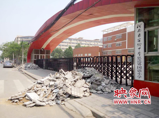 25日下午,映象網(wǎng)記者來到河南省實(shí)驗(yàn)中學(xué)思達(dá)外國語小學(xué)門口發(fā)現(xiàn),前幾天已經(jīng)清理干凈的校門口再次被建筑垃圾所包圍。