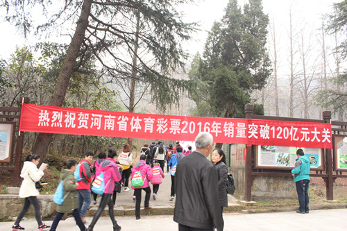 2017年1月1日元旦佳節(jié),“中國體育彩票”全國新年登高健身大會(華中主會場)暨信陽新年登雞公山健身大會“精彩開幕,來自社會各界的3000余名群眾、體彩代表及健身愛好者參加活動。新年登高意義深遠(yuǎn),在參與全民健身鍛煉體魄的同時,還能帶來美好的希望。在協(xié)辦單位河南省體育彩票管理中心的指示下,體彩信陽分中心組織了80名網(wǎng)點業(yè)主組成代表隊參賽,并在開幕式現(xiàn)場舉行了多種形式的宣傳活動。