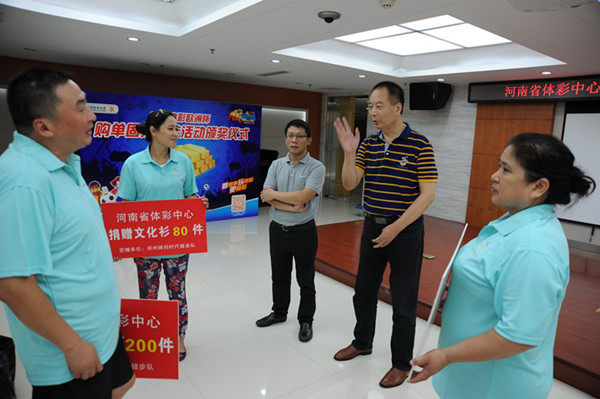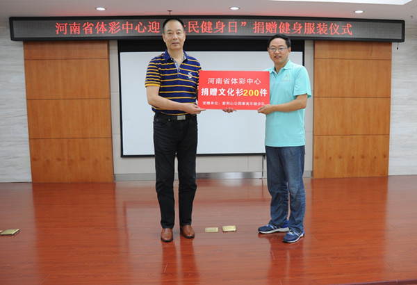 據(jù)河南省體彩中心主任孫和平介紹,中國(guó)體育彩票作為國(guó)家公益彩票,其發(fā)行宗旨是“來(lái)之于民 用之于民”,一直履行著支持全民健身這一光榮使命。去年是《意見》印發(fā)的第二年,河南體彩中心已開始落實(shí)該文件精神,向社會(huì)健身團(tuán)體捐贈(zèng)了3000件健身服裝,受到健身群體的歡迎和高度贊揚(yáng),取得了良好的社會(huì)效益。今年的捐贈(zèng)是河南體彩中心支持我省全民健身這一公益活動(dòng)的延續(xù),今后我們將嘗試擴(kuò)大捐贈(zèng)范圍,讓更多的健身群體在強(qiáng)身健體、重視體育、支持體育、參與體育的過(guò)程中,感受到中國(guó)體育彩票的關(guān)注和支持,讓更多的群眾在健身中受益。孫主任表示:河南體彩中心也希望通過(guò)持續(xù)和擴(kuò)大類似的公益活動(dòng),為我省的父老鄉(xiāng)親在強(qiáng)身健體、健康生活的道路上,做出河南體彩人積極的貢獻(xiàn)。今年我省的“全民健身日”主題活動(dòng)將在焦作舉行,各地市也會(huì)開展大規(guī)模的全民健身主題活動(dòng),預(yù)祝我省的全民健身主題活動(dòng)圓滿成功。