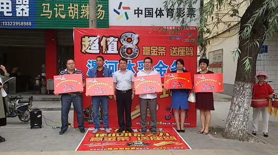 截止9月18日,在轟轟烈烈的中獎(jiǎng)熱潮中,漯河共中出座駕10輛,金條1根。好事傳千里!這樣的喜訊很快在漯河體彩網(wǎng)點(diǎn)和彩民中宣傳開來,這不,9月19日上午漯河分中心組織中獎(jiǎng)彩民在4111030616網(wǎng)點(diǎn)門口舉行了“超值8”頒獎(jiǎng)儀式。在活動(dòng)現(xiàn)場(chǎng),獲得座駕和金條大獎(jiǎng)的彩民紛紛趕來,在大家的祝賀聲中走向頒獎(jiǎng)臺(tái)。而他們中獎(jiǎng)的喜訊也在各大網(wǎng)點(diǎn)微信群、朋友圈和QQ群中反復(fù)轉(zhuǎn)發(fā)。