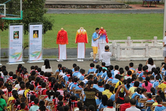 在建設(shè)美麗鄉(xiāng)村的社會(huì)背景下,“冠軍課堂”鄉(xiāng)村行是廣東省體彩中心、廣東省青少年體育聯(lián)合會(huì)對(duì)“公益體彩·快樂(lè)操場(chǎng)”活動(dòng)的延伸,由國(guó)家級(jí)跳水教練、奧運(yùn)冠軍教練胡恩勇帶領(lǐng)世界冠軍及優(yōu)秀運(yùn)動(dòng)員,歷時(shí)4個(gè)月,走進(jìn)9地市的25 所山區(qū)中小學(xué)校,為那里的師生帶去體育器材,上一堂公益體育課,部分優(yōu)秀運(yùn)動(dòng)員還會(huì)在受助學(xué)校支教半年。活動(dòng)為孩子們樹立了“愛(ài)運(yùn)動(dòng),強(qiáng)體魄”的觀念,讓缺少體育器材和專業(yè)體育教師的孩子們都能“每天快樂(lè)運(yùn)動(dòng)一小時(shí)”。