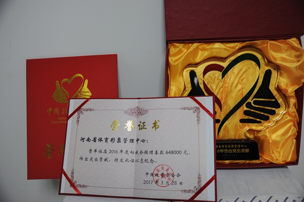 河南省體育彩票管理中心榮獲突出貢獻(xiàn)獎