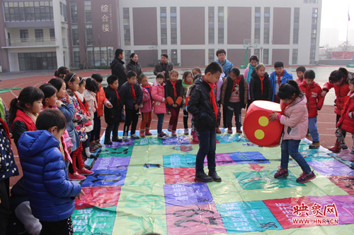 映象網(wǎng)教育頻道訊(記者 劉俊 通訊員 何利敏)“紅燈停,綠燈行,向前2步……”“阻止家人酒后駕車向前3步……”在鄭州市高新區(qū)五龍口小學(xué)的操場(chǎng)上,一場(chǎng)別開(kāi)生面的“下棋”比賽正在進(jìn)行。在一張巨無(wú)霸“交通安全飛行棋”棋盤上,同學(xué)們扮作“棋子”,在棋盤上的小方格之間“穿梭”。一道道交通安全知識(shí)題目“攔”在“棋子”面前,答對(duì)問(wèn)題方可繼續(xù)“前行”。
