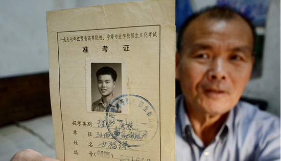 1978年夏天,迎來恢復(fù)高考后的第二次考試,考試結(jié)束后,甘福保跑到高招辦買了試卷回來自己做,從此后,他就一發(fā)不可收拾,每年高考都會買一份試卷回來,一直堅(jiān)持到2016年的高考。圖為甘福保展示當(dāng)年高考時(shí)的準(zhǔn)考證。