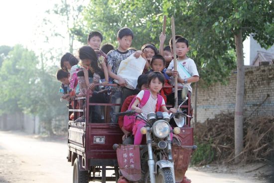 車子怎么會拉了那么多孩子?我不得不調(diào)轉(zhuǎn)車頭追上去看個究竟。