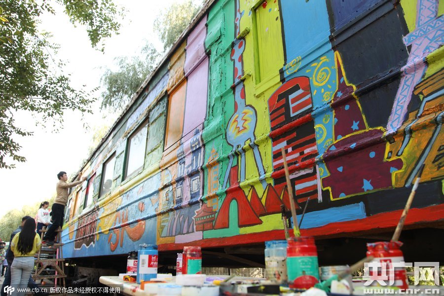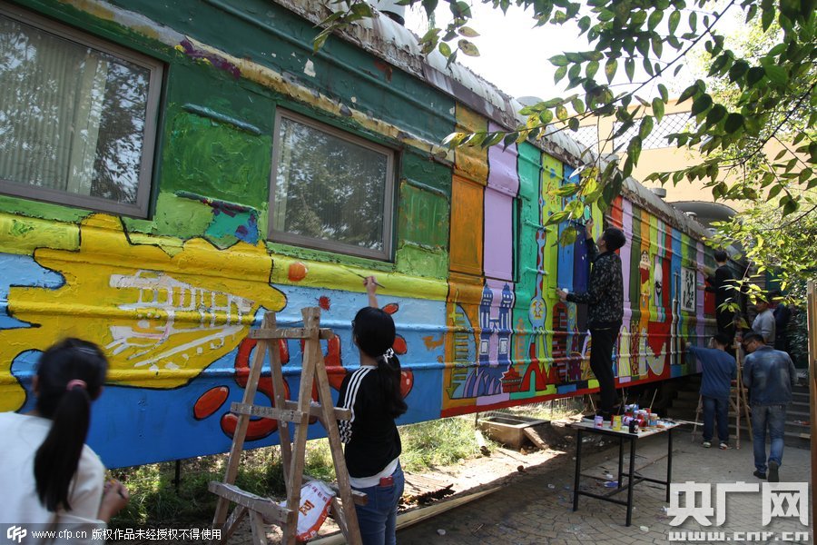 2015年10月10日,鄭州四禾美術(shù)中學(xué)充分發(fā)揮美術(shù)生的優(yōu)勢,對(duì)火車車身1進(jìn)行涂鴉改造,使火車宿舍看起來更加漂亮。