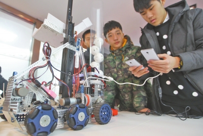 咱鄭州的學(xué)生“玩”機(jī)器人很有一手!11月23日~24日,2015世界青少年機(jī)器人邀請(qǐng)賽在北京舉行,鄭州二中8名高中生組成的隊(duì)伍“殺入”四強(qiáng),國(guó)內(nèi)排名第二,并榮獲最佳設(shè)計(jì)獎(jiǎng)。昨日,記者見(jiàn)到了剛剛比賽歸來(lái)的學(xué)生們和他們?cè)O(shè)計(jì)的機(jī)器人。