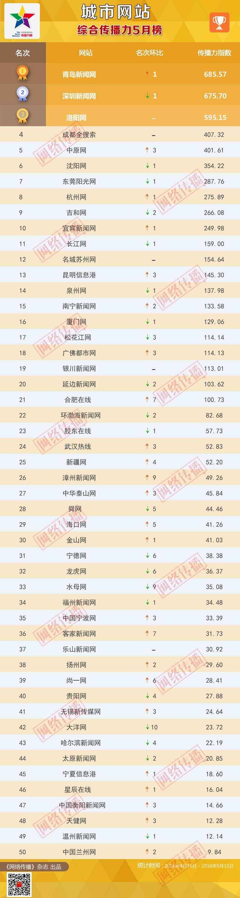 城市網(wǎng)站傳播力2016年5月榜發(fā)布